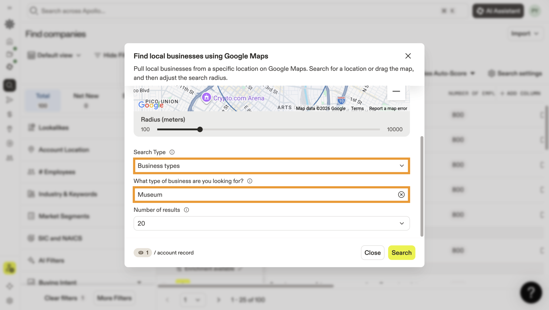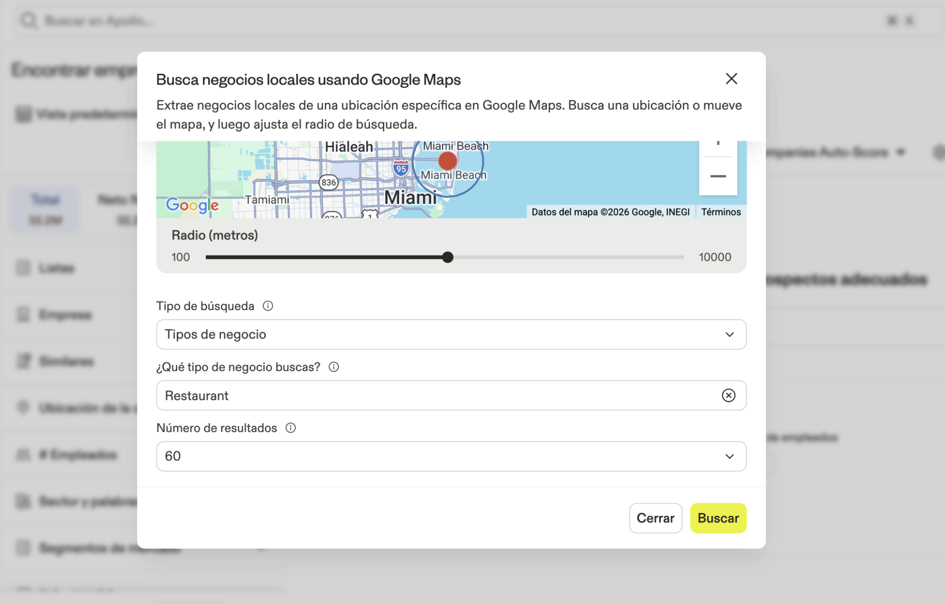 Identifica empresas en cualquier zona geográfica basada en un mapa